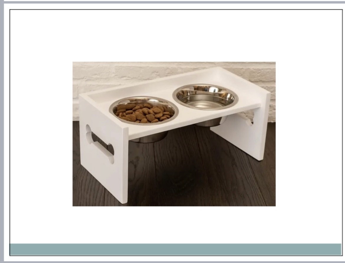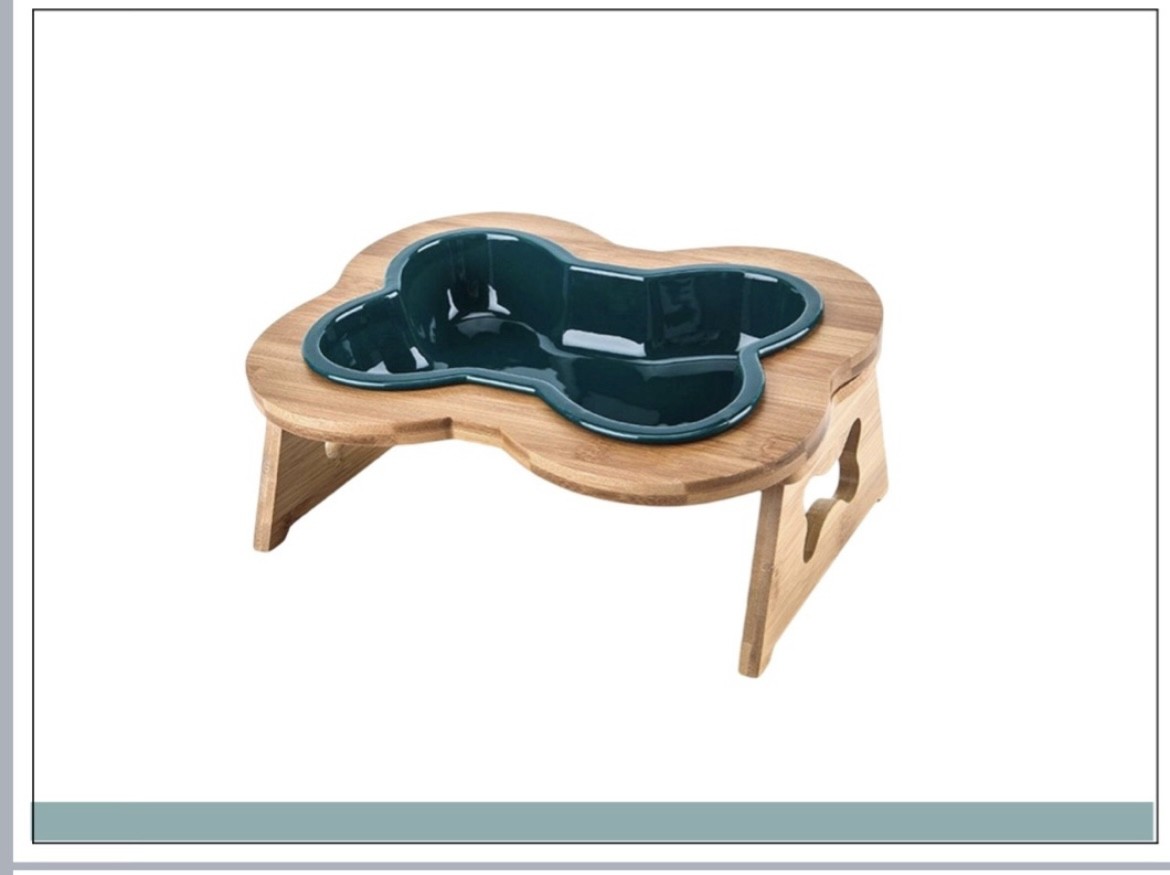 Designer Wooden Raised Pet Feeder with Bone Shaped Bowl