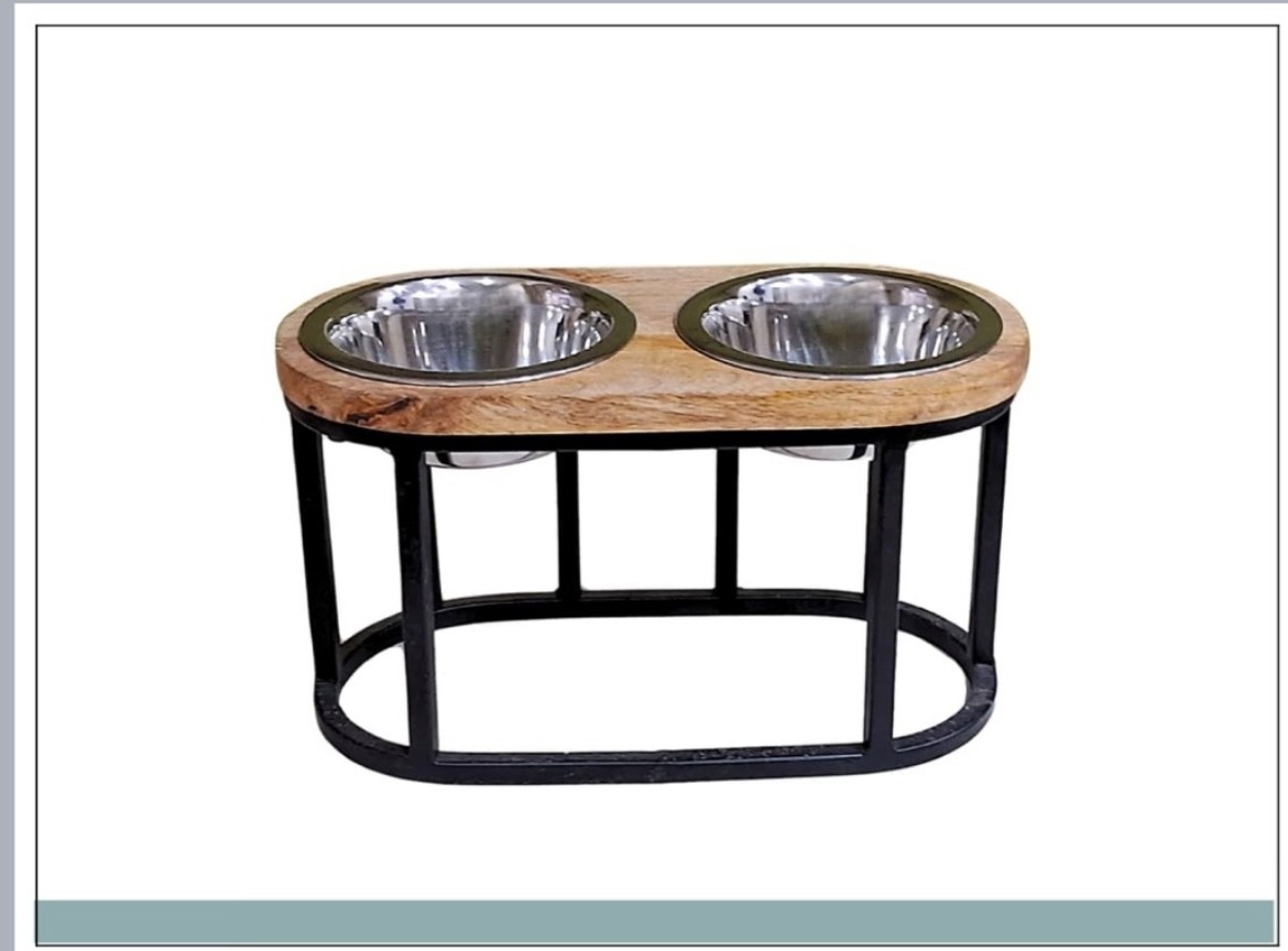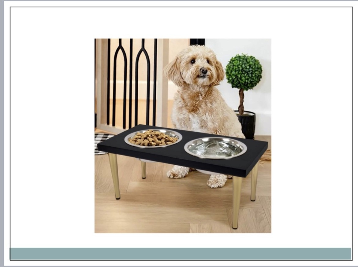 Wooden & Metal Raised Double Bowl Pet Feeder – Modern Dog Feeding Stand