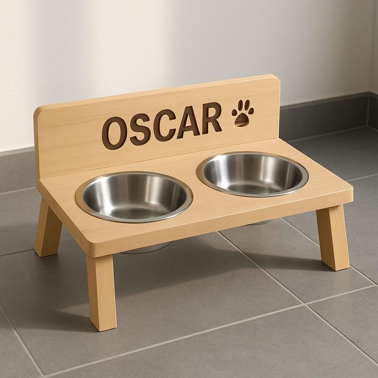 Handcrafted Wooden Pet Bowl with Paw Print Design