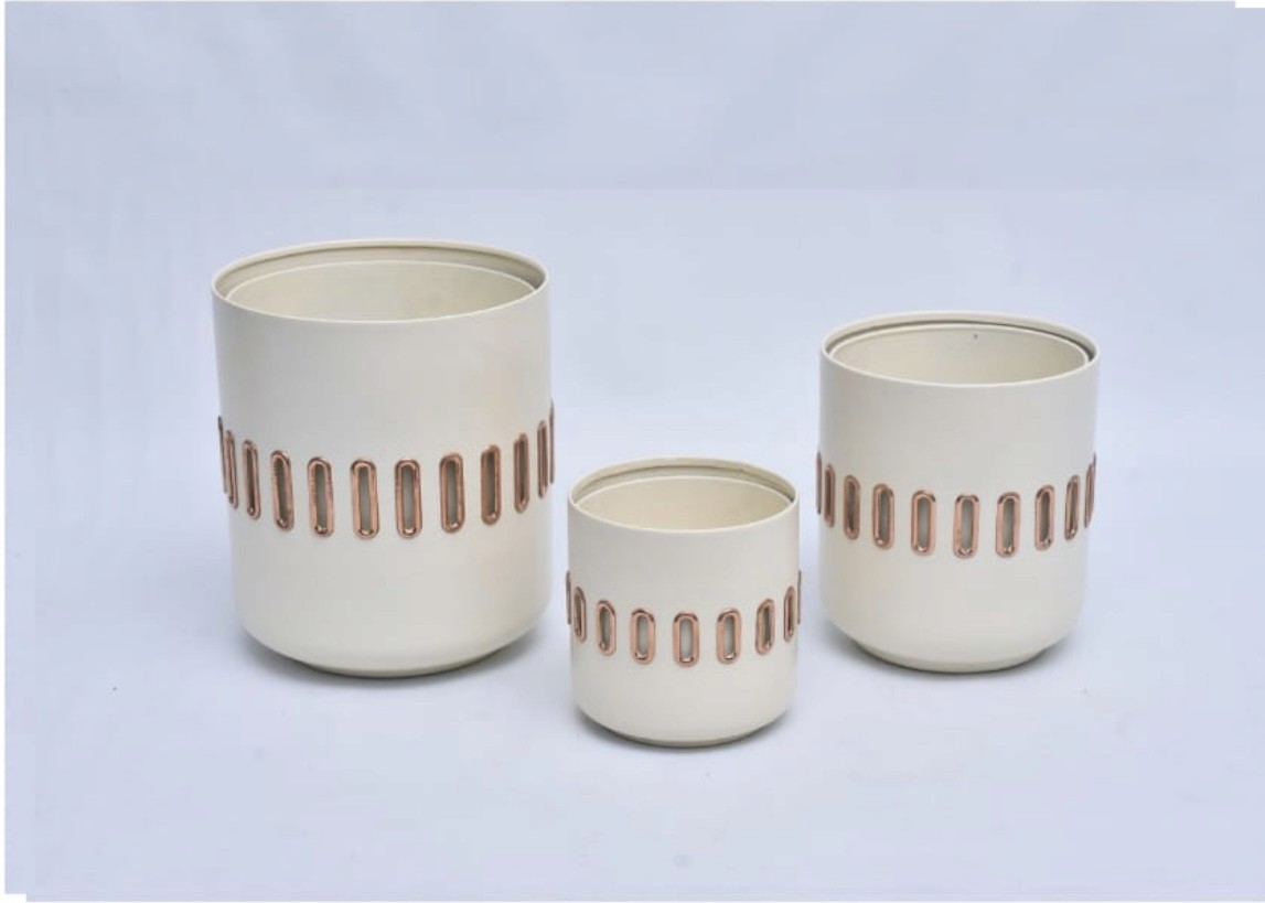 Modern Metal Planter Set with Copper Accent – Contemporary Home Décor