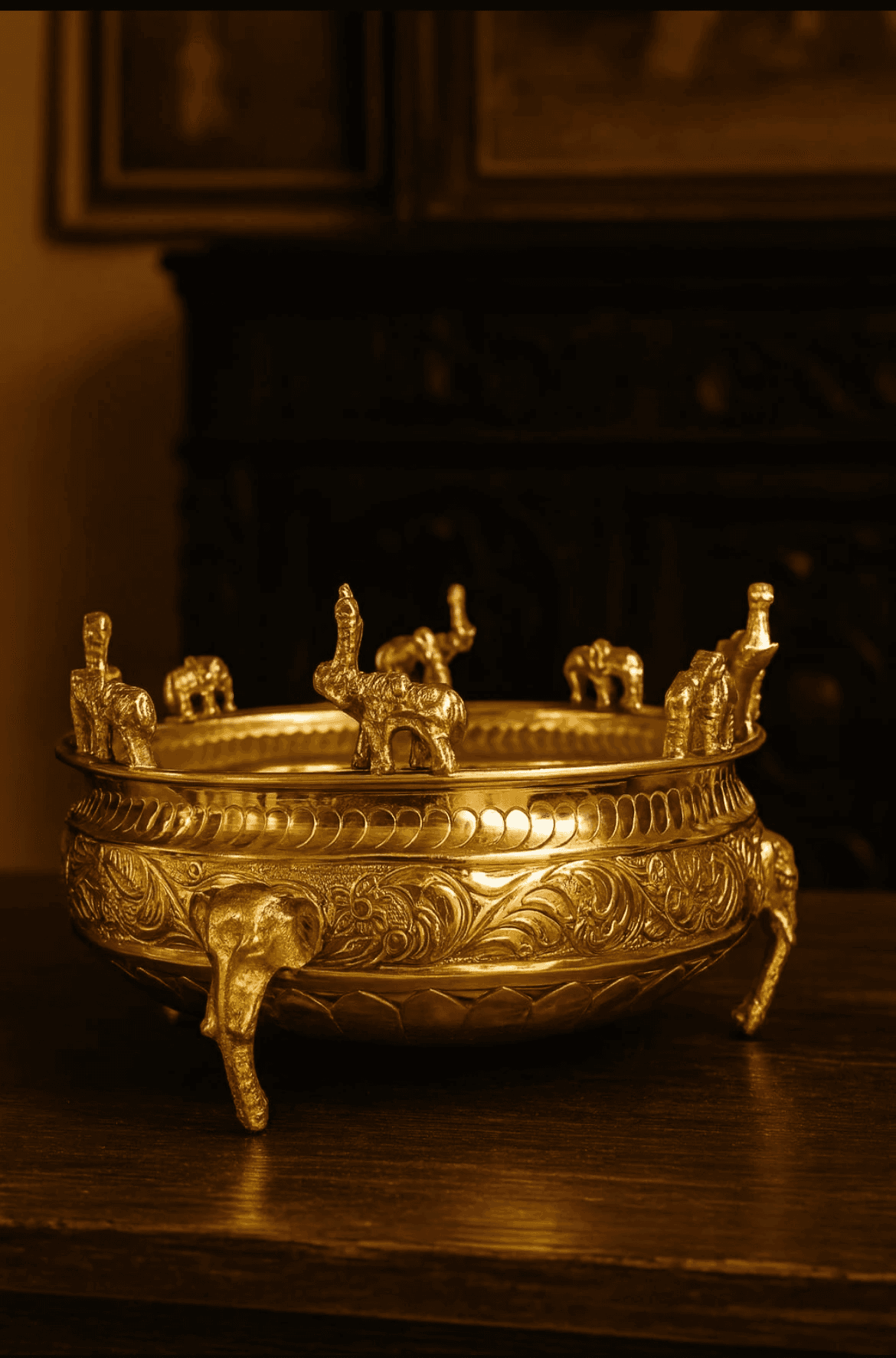 Antique Aluminium Decorative Bowl with Elephant Motif – Handmade