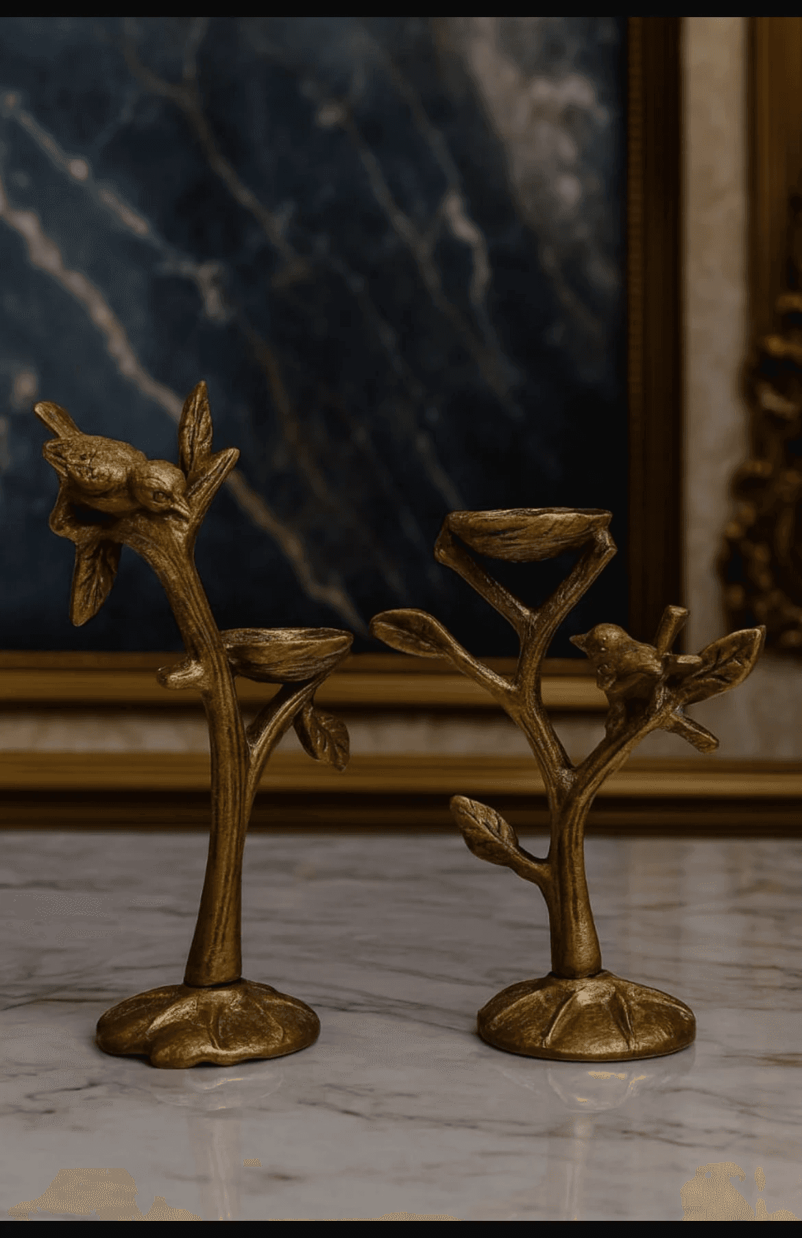 Bird Design Metal Candle Holder Set – Artistic Handmade Décor