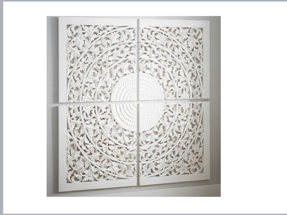 White Handcarved Wooden Wall Panel Set – Floral Decorative Wall Art