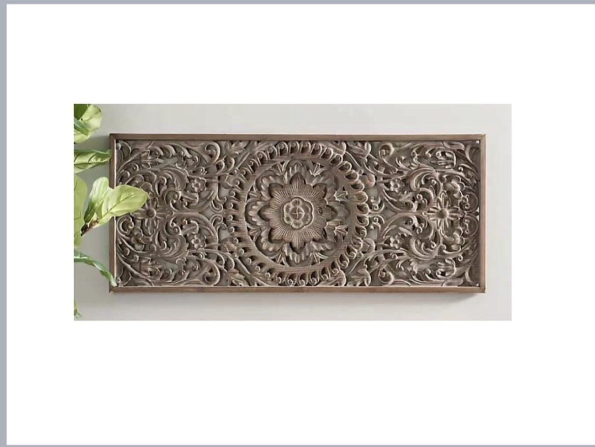Handcarved Wooden Floral Wall Panel – Rectangular Decorative Wall Art