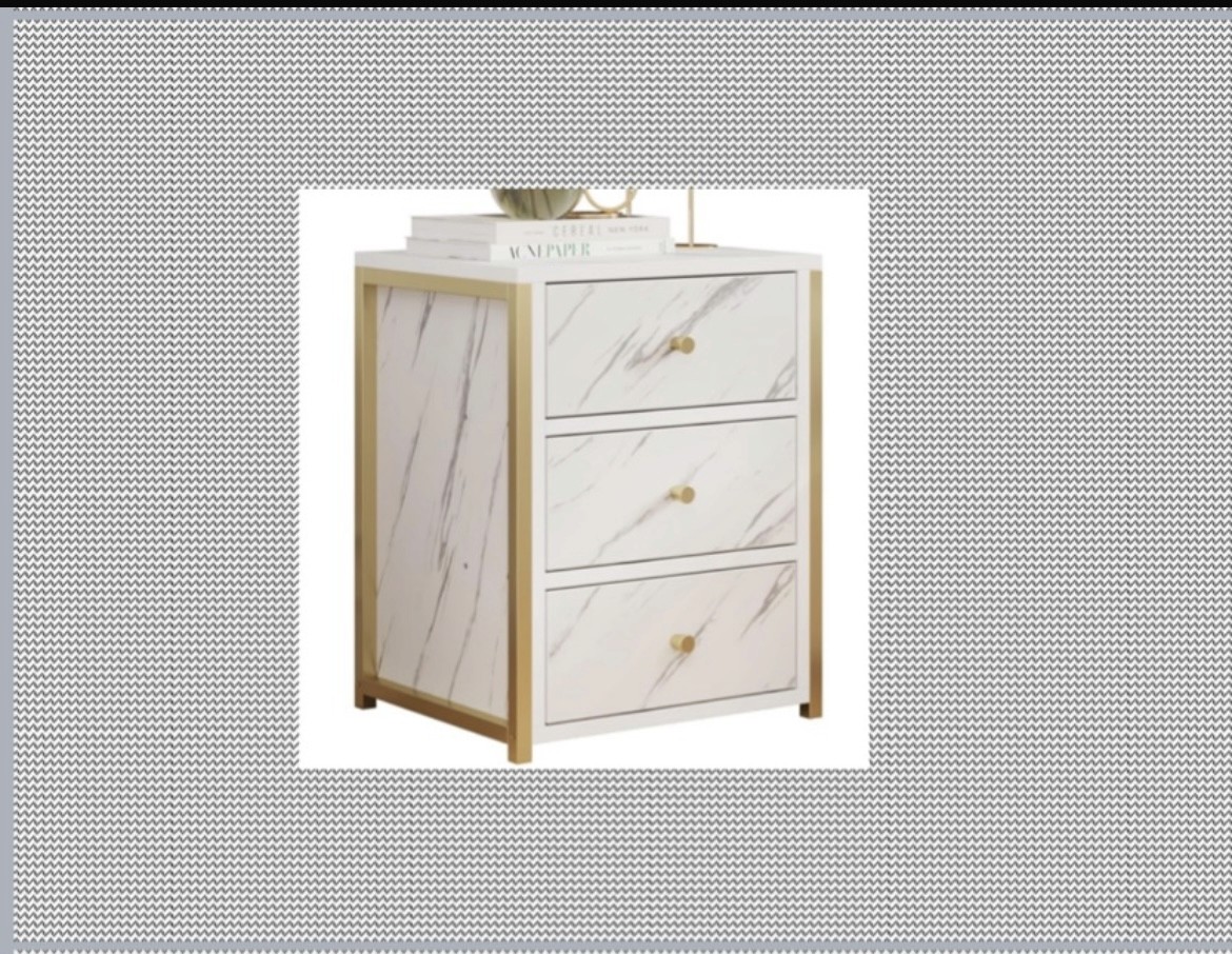 Modern Bedside Table with Marble Finish – 3 Drawer Storage Unit