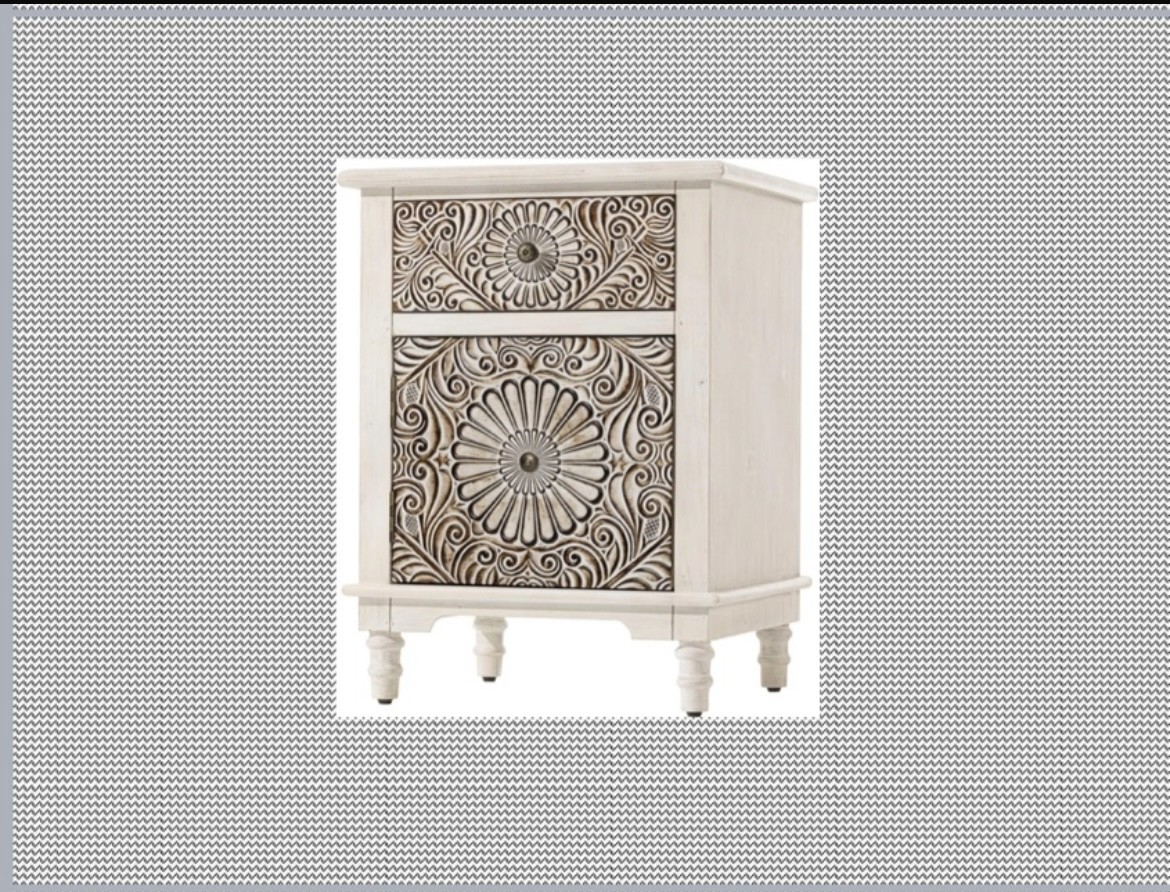 Handcarved Wooden Bedside Cabinet with Floral Design – White Finish