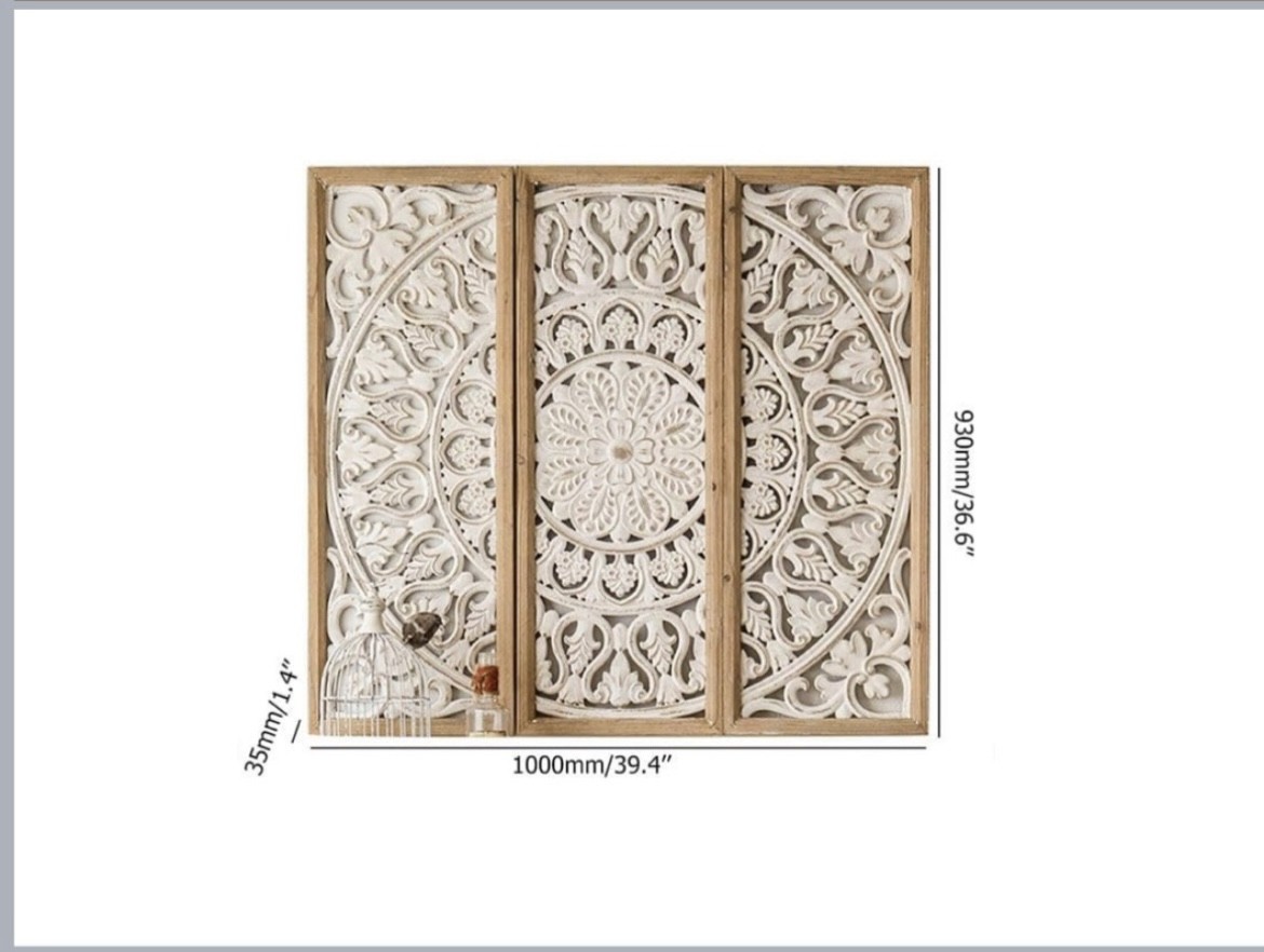 Handcarved Wooden Wall Panel Set – Mandala Design Decorative Wall Art