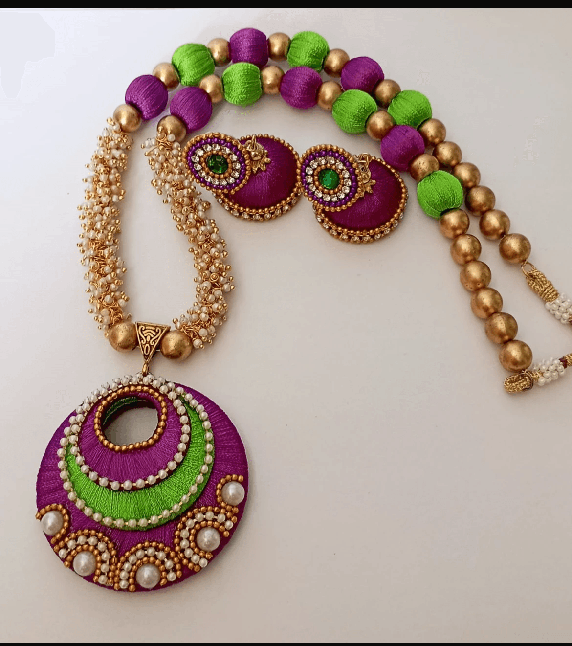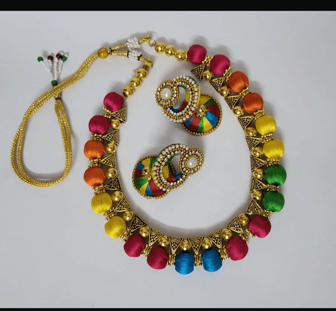 Handcrafted Multicolor Silk Thread Jewellery Set - 103