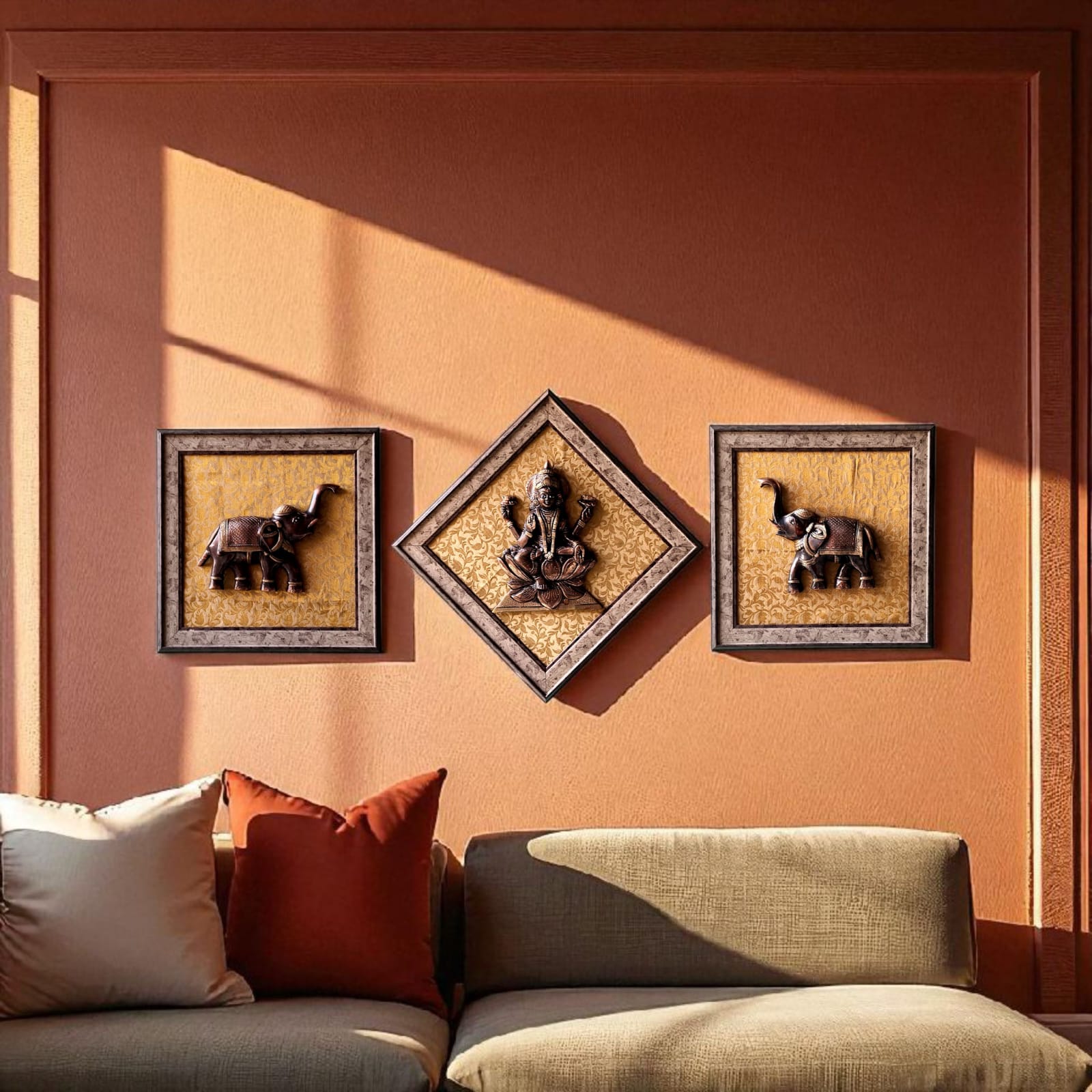 Handcrafted Metal Sun Face Wall Art with Wooden Frame